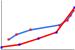 This example also has three data series, but only two colors are specified. Because the color for the third series is unspecified, the third line is drawn using the first color (red). |